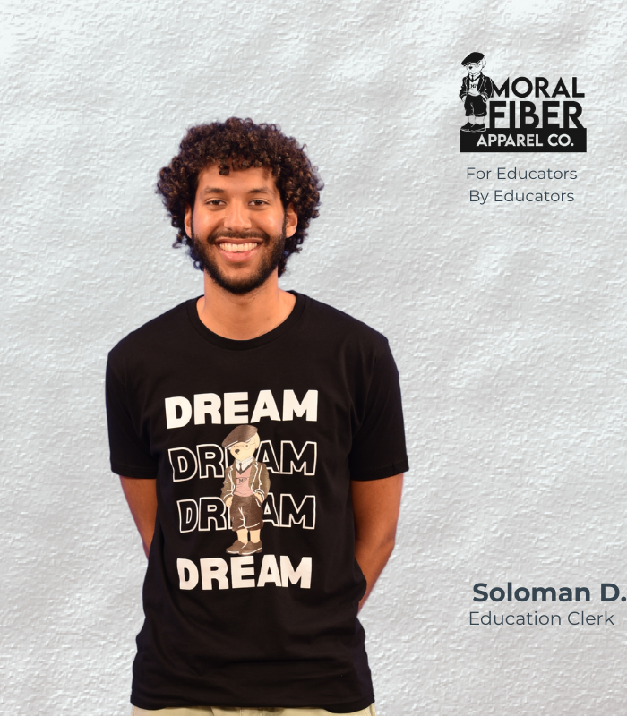 Introducing the “DREAM” T-shirt by Moral Fiber – bold, clear, and inspiring. Available exclusively in black, this tee showcases a larger and more defined “DREAM” logo, with a bear educator at its center, prominently placed in the middle of the shirt for maximum impact. Designed for those who believe in the power of education and big dreams, this shirt makes a statement wherever you go.