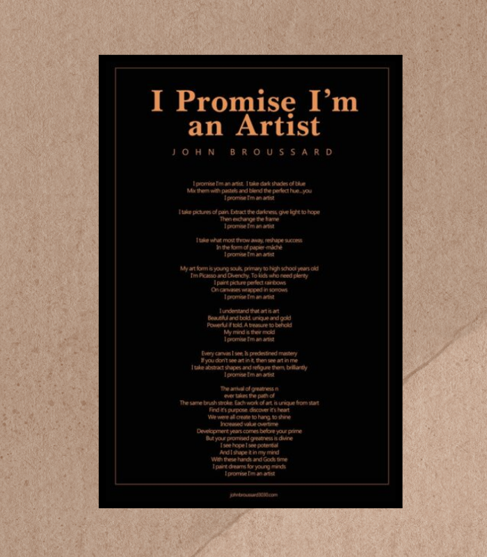 Honor the creative spirit of teaching with “I Am an Artist: Special Edition Poster for Teachers,” a glossy, 12×18 inch tribute to educators from John Broussard’s “Diary of a Poet.” This poster, ideal as the top gift for educators, beautifully illustrates the concept of the teacher as an artist and the student as their canvas, showcasing the profound impact of nurturing belief, hope, and possibility in young minds. Perfect for classroom walls, it serves as a daily reminder of the artistry and dedication involved in shaping the future. Gift it to celebrate the invaluable role teachers play in creating the masterpiece of tomorrow’s society.