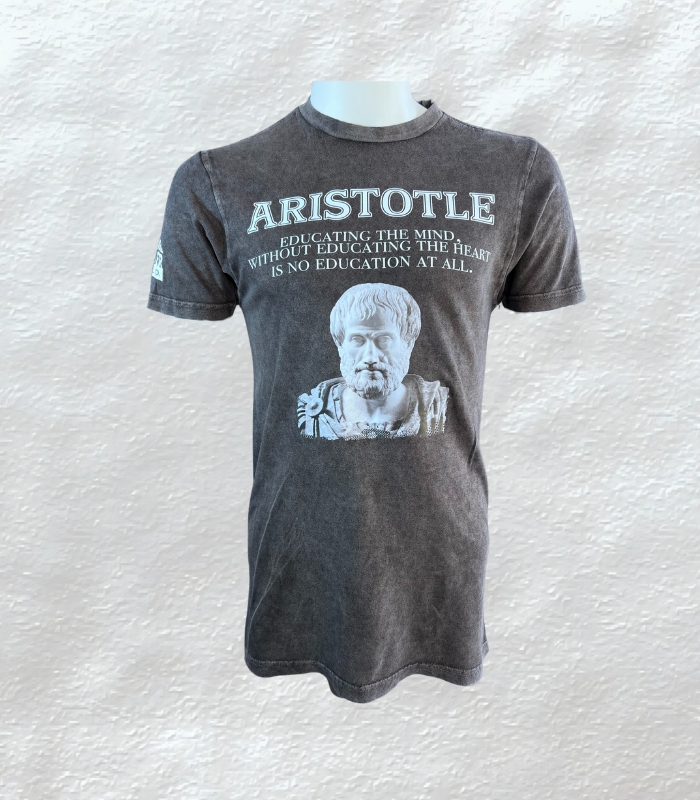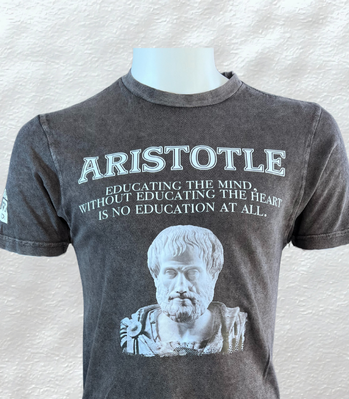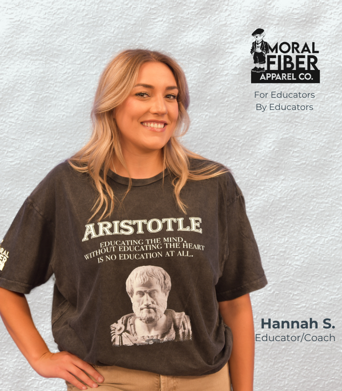 Introducing “The Standard” T-shirt by Moral Fiber – a timeless tribute to education’s true purpose. Available in classic black, this tee features Aristotle’s iconic quote, “EDUCATING THE MIND WITHOUT EDUCATING THE HEART IS NO EDUCATION AT ALL,” prominently displayed in the center of the shirt, with a distinguished image of Aristotle placed just below. Designed for educators who inspire both intellect and empathy, this T-shirt is a powerful reminder of the values we uphold in the classroom and beyond.
